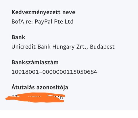 Kedvezményezett neve: PAYPAL PTE LTD (a BofA re: = Kedvezményezett neve:)
