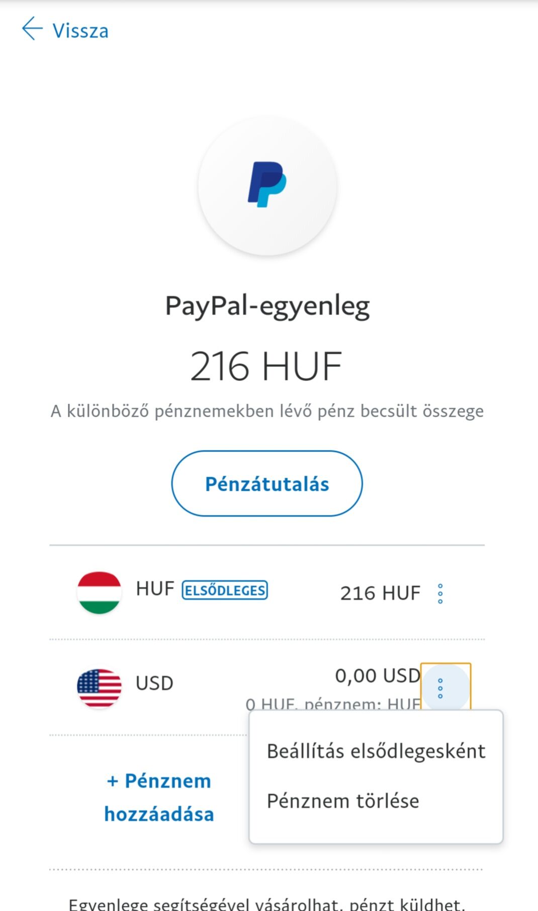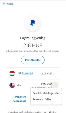 Nincs folyószámlám, ezért az Unicredit bank pénztárában fizetném be a szükséges forint összeget amiért meg tudnám venni a telefont.PayPal itt vezeti a számláját azért az unicreditnél. Visszatérve az eredeti kérdéshez akkor most van jelentősége így változtatni a képen látható elsődleges valutanemen?