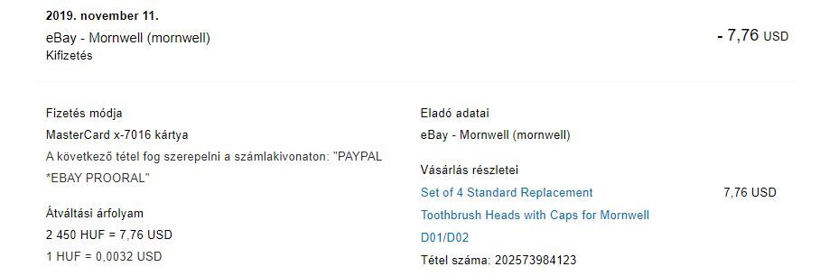 Vettem az Ebay - röl egy fogkefe pótfejcsomagot.