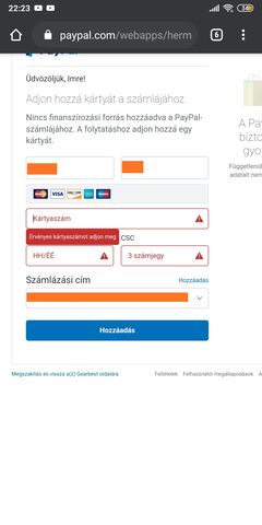 Újfent kérném a segítséged. Írtam korábban hogy nincs folyószámlám, ezért az Unicredit pénztárjában fizettem be PayPal számlámra a pénzt sikeresen. GearBest vásárlás véglegesítésénél mikor PayPal ra irányít át ez fogad: