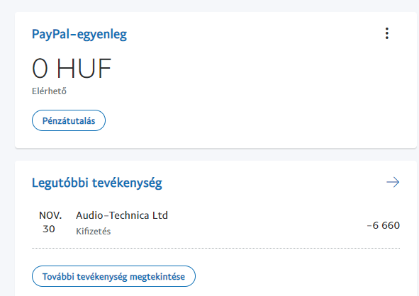 A PayPal is ennyit kapott le a VISA kártyámról, amiről meg is jött a visszaigazolás, és a fiókomban is látszik: