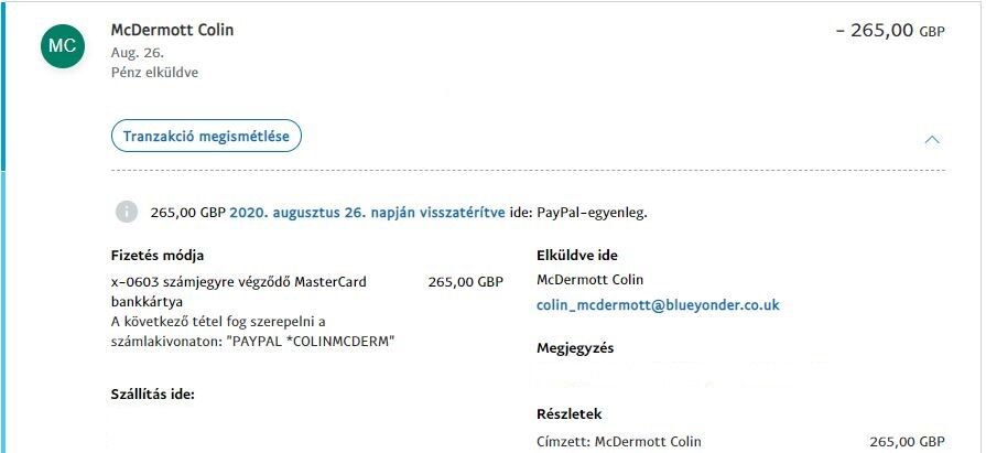 Nincs pénzváltási díj vásárlás esetén. Mennyi volt kiírva, milyen devizában és mi volt a pénz forrás a PayPal-on belül?