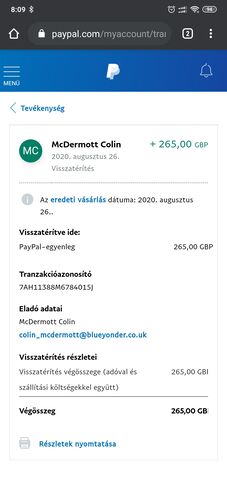 Vásároltam ebayen, az eladónak elfogyott a terméke, aztán visszaküldte az árát.