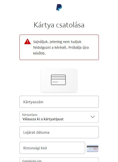 Az egyenlegre utalhattál volna de kell legalább 24 óra munkanapos idő. Most ebben a pillanatban néztem nincs hibaüzenet, lehet kártyát hozzáadni, én Firefox-ot használok és nincs a PayPal sem reklámblokkolón, sem a tűzfalon blokkolva, meg anonim böngészés sincs. És ezen az oldalon lépek be.