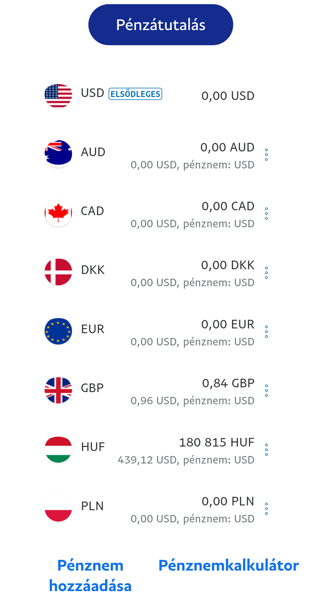 bárkinek küldenék számlára egyből valami valutáról kell elszámoljon,ez jelenik meg.