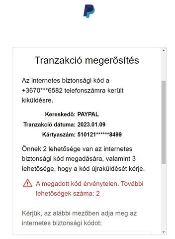 De kezdjük újból. Nekem sms azonosítás van és ezt írja a PayPal: