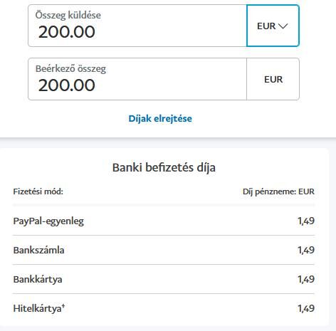 Nem azt írtam hogy használhatod pénzküldésre a PayPal egyenleg igénybevételével? Nem írtam volna ha nem oldaná meg a problémádat. Pár EUR vagy ingyenes, regisztrálj és írja költségeket. Ha a PayPal EUR egyenleget akarod használni akkor biztonság kedvéért az legyen az alapértelmezett, ne a HUF.