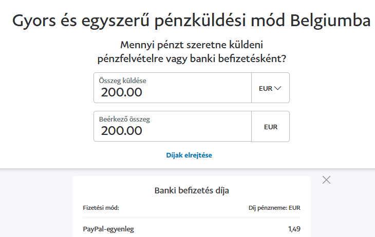 Ekkor a képen láthatóan 200 EUR esetén 1,49 EUR díja van és ez igazán baráti díj.
