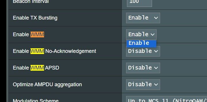Nem tudom, a WRT mit takar, de az asus oldalán azt találtam, hogy ez a wifi: "Operációs rendszer :ASUSWRT" - és találtam wmm mode-ot a beállításokban, de nem lehet disablet kiválasztani.