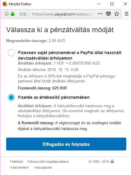 És nagyon szépen váltja a fontot. Persze majd az Erste jól elcseszi, amikor forintra váltja eladásin, de még így is sokkal kevesebbet vonnak le, mint a dupla konverzióval, vagy a PayPay árfolyamával. -