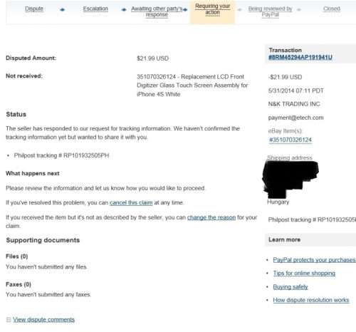 Mondjuk ha Ebay, akkor ebayen kell nyitni aktát, ott jól ismerem a dolgokat, mivel ott már jó pár volt, csak PayPalon most volt egyszer, de azt meg nekem ítélték, mivel a feladó nem válaszolt semmit.