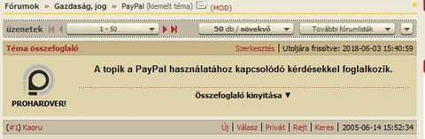 Vám- vagy adócsalással, a PayPal szabályainak kijátszásával kapcsolatban tilos tanácsot adni vagy kérni a fórumon!