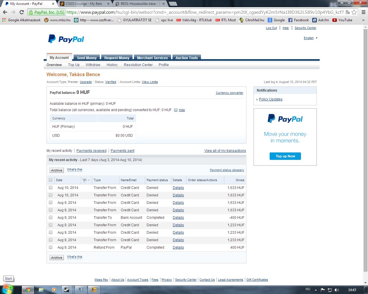 tételnél a bankártyáról(mivel a paypalon 0 van