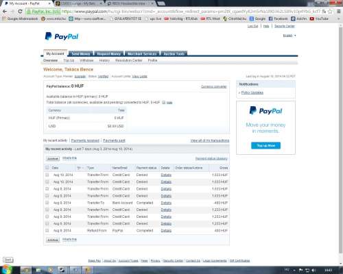 Amúgy van olyan problémám is, hogy valaki (üzletfél) külön küldött a PayPal ID -re pénzt (HUF-ba) és azt nem tudom kivenni, mert azt írja, hogy az a számla már másik PayPal számlán van használva.. (talán régebbi PayPal számlámhoz lett még hozzáadva, de arról semmit sem tudok már)