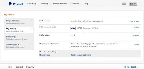 Akkor előkerül a My Profile normális oldala és ott a My money