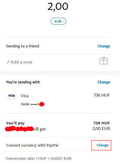 Közben módosítottad, majd a következő oldalon fogod látni, de EUR-t küldjél eleve. Lásd lejjebb a képet.