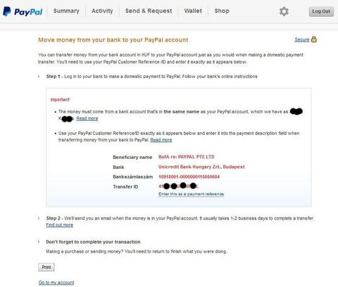 1. Top Up ez az PayPal Unicredit Bankszámláján keresztüli egyenleg feltöltés, utalni a saját nevünkre szóló bankszámláról 1-2 nap