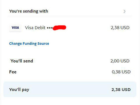 De segítek bár ezt te is meg tudtad volna nézni. Ha nettó 2 $-t akarsz küldeni valakinek, akkor neked ez 2,38 $-ba kerül.Ha nem te fizeted, akkor ő csak 1,64 $ kap.