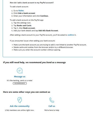 Bár nem értem az előző hsz-t, a Help felülten lehet kezdeményezni számlahozzáadás témában üzenetküldést és ott a PayPal Assistant chat robottól az emberi kapcsolatot kérni a kiírt időben (Írja is: If I can't then I'll transfer you to a customer support agent) és lehet telefonálni is számla hozzáadás ügyben. Most 12:03-as időpont. -