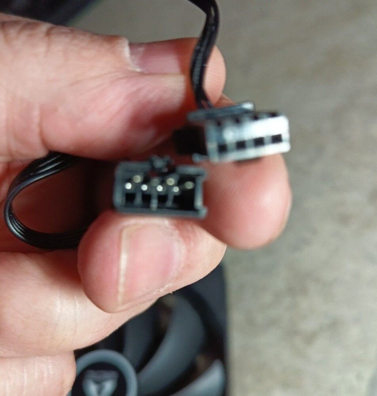 Az apa oldal 4 pin, PWM-nem tűnik (már csak a 4 ér miatt., az a másik három fémes pötty remélem képhiba, és nem 3 másik tű. Ha enneknaz apa csatinak a vége a venti motor alá megy be, ez PWM csati. Ezek a ház ventik simán fel vanna fűzve, csak a sebességjel hiányzik az első venti után, a többinél az nincs felfűzve (nem lehet).
