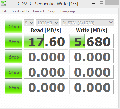Tegnap nagy fájlokat másoltam rá 700kb és 1mb közti sebességgel..Most ebéd előtt elindítottam egy tesztet, és jó fél óra után még mindig itt tartott: