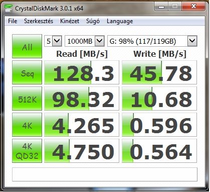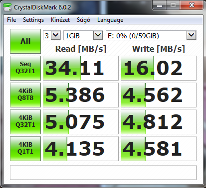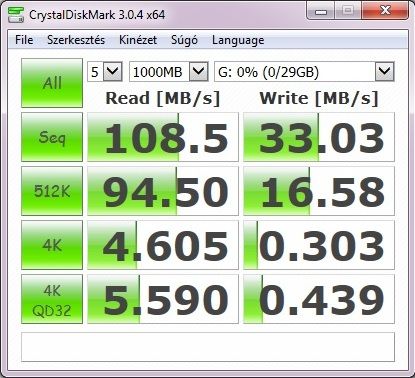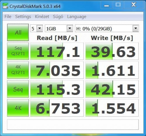 Mostani mért értékek: Írás: 29Mb/s Olvasás: 39Mb/s -