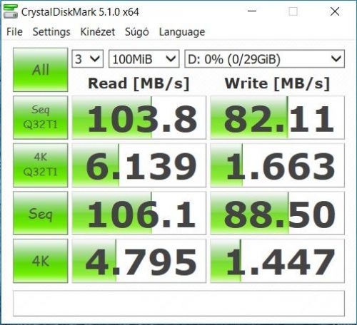 Sandisk Exteme 32 GB, itt is van eltérés a megadott értékekhez képest.