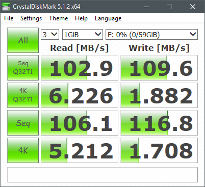 Én mondjuk nem szeretem ezt a CDM 5.03 verziót, a régebbi 3.04-essel szoktam mérni, illetve ATTO-val. -