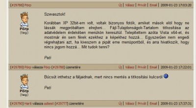 nem ritka, en is szoktam, mikor nem ugyan a forumon ugyan nem kapok valaszt, de ugy velem, masoknak is hasznos lehet a mashol megtalalt info (mint pl a fenti esetben is, jol johet, ha mas is tudja, meg kell orizni az eredeti titkosito kulcsot, ha szeretne meg viszont latni az adatait)