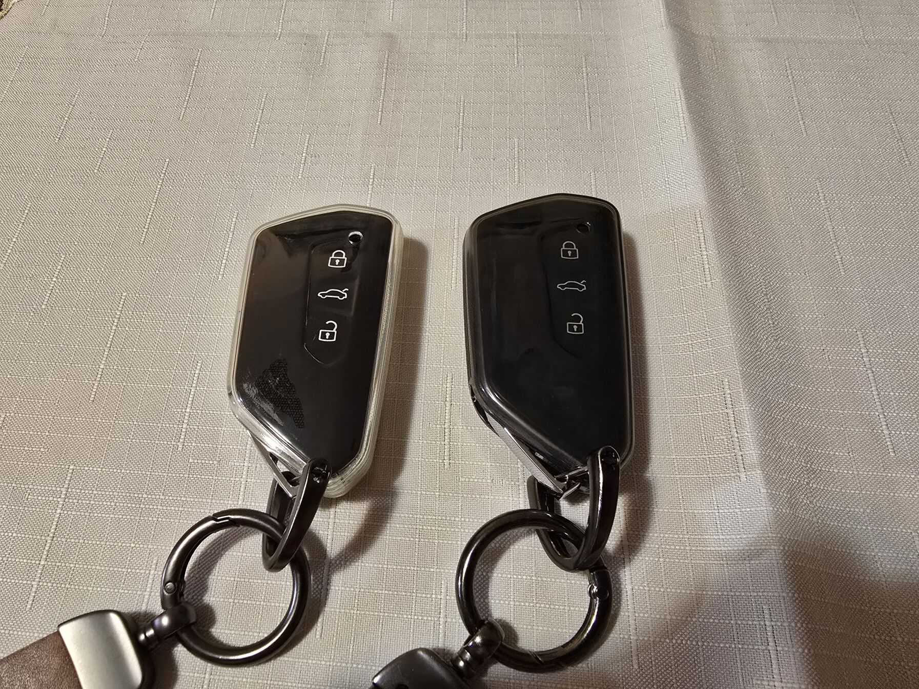 Én ilyet használok. 3.33 + 0.83 + 0.66 éve használom, napi szinten zsebben hordva. Egy-két helyen a cérna kicsit rojtos, de nincs szakadás, vagy egyéb sérülés rajta. Viszont a kulcs azért karcolódik alatta sajnos a portól. Szerintem ezt kivédeni elég nehéz a zsebben hordott kulcs esetén.