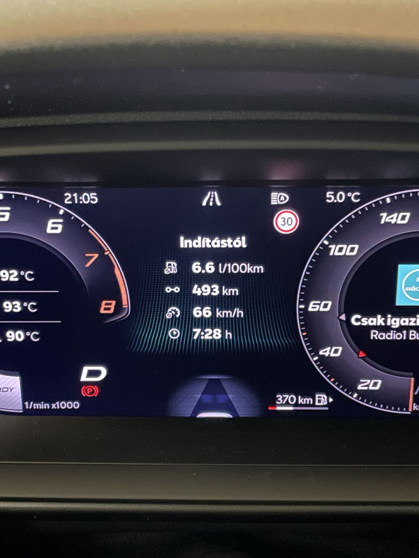 Mindent lehet offolni, a sebességhatár figyelmeztetés sem idegesítő, nagyon diszkréten jelez, így az marad. Talán majd Ausztriában megvédi a seggem. Megizzadtam mire az automata távfényt aktiválni tudtam. Jelenleg a keyless entry megy az agyamra, és sehol sem tudom kilőni, egyszerűesn nem találom hol kell.