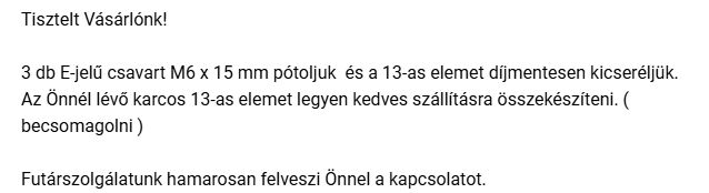 Félve kértem a 13-as elem cseréjét, met feltételeztem, hogy nincs csak úgy szabadon.
