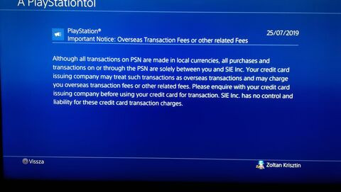 Hongkongi profilommal belépve a Ps4 konzolom ezzel az üzenettel fogadott :