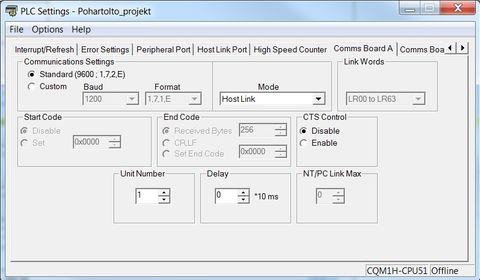 a Baud Rate, data Bits, stb. automatikusan ki lesz töltve, alapértelmezett beállítási értékekkel.ezután már működnie kell, a plc-n a settings-ben a soros portot nem igazán kell el állogatni.