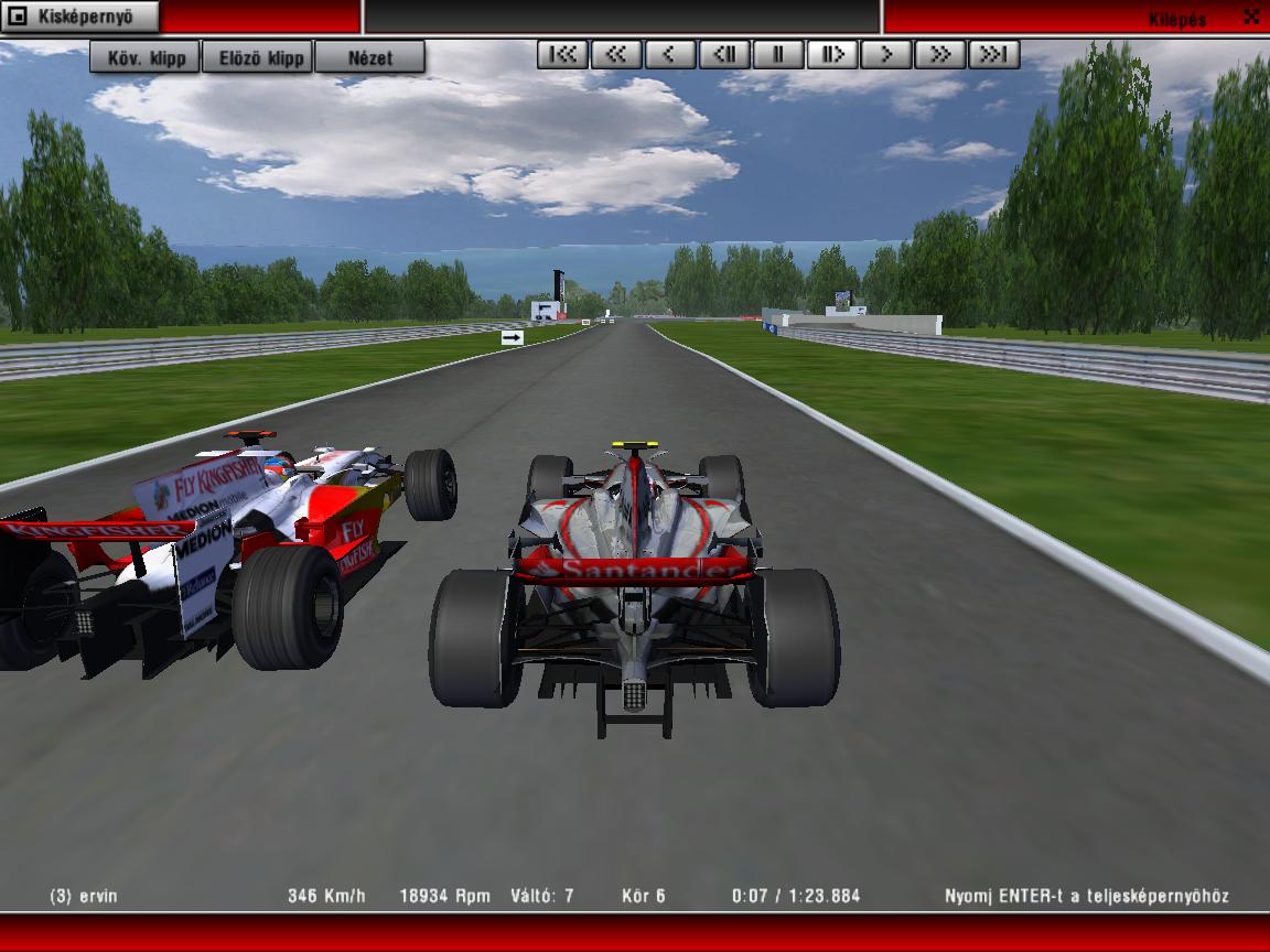 Na a tegnap este, remek lett. 1xer hibáztam, azaz elmértem a féktávot, és lerongyoltam Farkast. Ellenben én aszem 4xer úgy estem ki az első kanyar elött, hogy továbmenni nem tudtam. Visszanézegettem a replayeket, nagy köszi azoknak, akik gyakorlatilag padló gázzal jöttek belém hátulról. Biztos nagy élmény volt nekik, de az én agyvízem felrort miatta. Aztán mirre verseny lett, már nem volt elsőszárnyam, és a gép nem is rakott fel újatt. Hiába indultam boxbol, hiába mentem be oda újra, akkor sem. El is ment a kedvem az egésztöl. Ezért léptem ki. Amúgy hogy sikerült a futam?