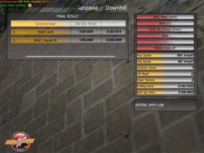 Szívemből szóltál Paja! Képzeljétek előbb vagy bő fél óráig nem találtam CTF-ben cl5-6 vagy akár 7-es szobát. Tele van a játék kezdőkkel, szinte egész nap ez volt a jellemző CTF-ben, ha mégis találtam egy cl5-ös szobát onnan azonnal ki is dobtak amint meglátták a subarum. Írták is hogy no AP car or kick, pedig nem értem nem egyszer vertek már meg fortésok, szerintem nem gyengébb kocsi mint a suby vagy az evo. Komolyan már kezdem unni, hogy minden szobának az a neve hogy NO ez meg no az. Annak idején mikor kezdtem a játékot kis myato wizzel mentünk a bumbalaci55-el a sok panamás ellen és eszünkbe sem jutott loserezni őket, vagy bármit is beszólni. Mindig az járt a fejemben, lesz ez még másképp is ha jó kocsim lesz. De mire elértem a jelenlegi szintem a játékban mindenki csak kickel, és nem is azért mert sportszerűtlen lennék, vagy valami, hanem mert viszonylag sokszor nyerek. Például pont tegnap volt, hogy beléptem a szobába, ahol egy fortés gyerek volt. Írja hogy nice car. Mondom neki thx, erre visszaír, hogy ok, bye, és kidobott a szobából. Az ilyen emberek rontják el a játékélményem. Azt már megszoktam, hogy sosem tudok 10% tapadást használni CTF-ben mert az már alaból kickelést jelent mindenhol no bp szobák vannak, pedig tudtommal azért van a trunk, hogy aki akarja használja, de ez a legkisebb problémám. Ma legalább tuner55-el összehaverkodtam toltunk jó sok ctf-party-t a subarukkal.