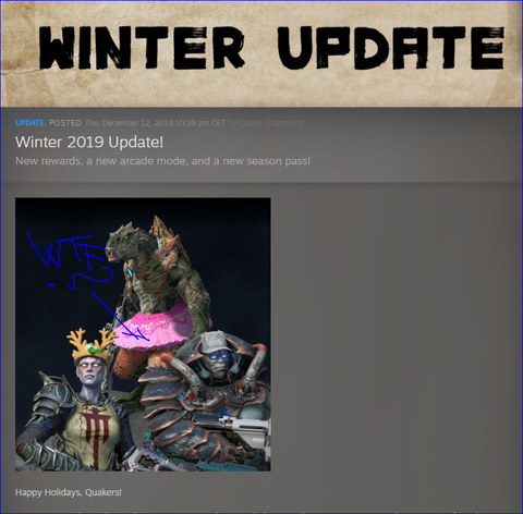Leginkább kellemetlen... Mondd csak ismersz olyan embert, akinek eszébe jutna ilyesmiket beletenni? Én nem. Pedig én vevő vagyok a humorra, a szokatlan megoldások sincsenek ellenemre (más kérdés, hogy érdekelnek e) de amikor egy "quake" kapcsán az ember lassan már azon se lepődik meg, ha karácsony előtt pár nappal kapnánk egy "javitó" peccset, ami annyit javitana a játékélményen, hogy a keel csillagszóróval a fülében rohangál karácsonyfaizzókba tekerve, az már nem vicces, inkább csak szánalmas lejáratása a quake legendának.