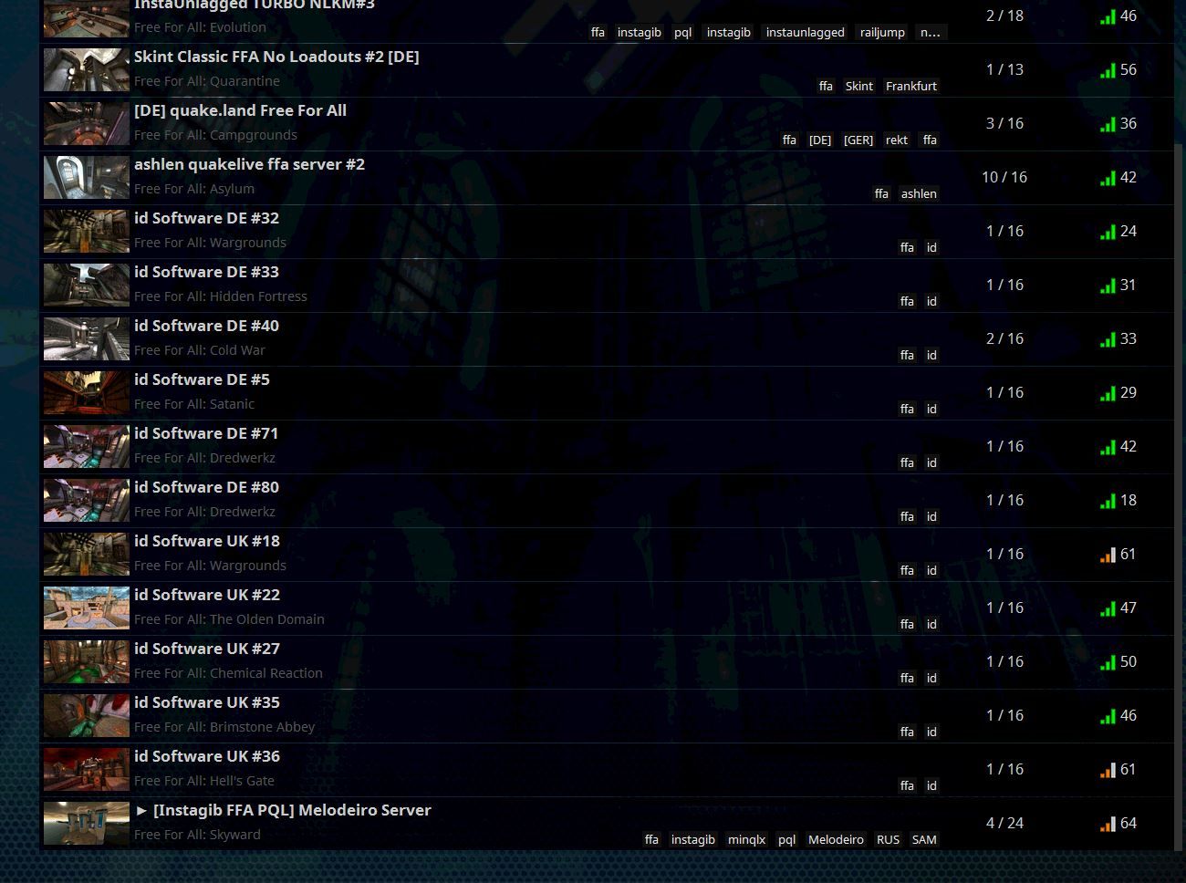 sztem nem ugyanazzal a jatekkal jatszunk. a szerverek minimum 1/3-at az id hostolja. az mas dolog h hozzad a legkozelebb nemetorszagban vannak portjaik es ha a maxpinget letetted legkisebbre akkor lehet, h nem latod.