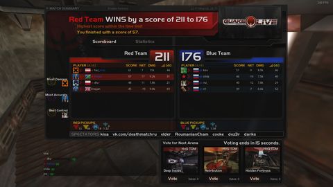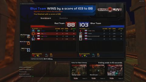 Ahogy néztem az opponent korábbi meccseit houseofquake.com-on, erőteljesen érlelődött bennem a gondolat, hogy most nem a dm14-et kellene választanunk (pláne, mivel ma Drayan egyáltalán nem volt elérhető, ő pedig kell oda - meg amúgy minden mapon kezdőben van ő is). XPEHOPE3 azért jó szokásához híven gyűjtött egy kis extra intelt a srácokról. Ez tovább erősítette bennem a dolgot, hogy a pörgősebb mapokon jobb esélyeink vannak.