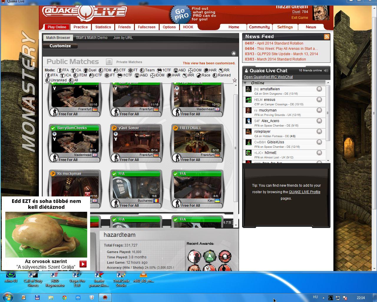 Instagibba beugrottam, elsőnek volt még 2 fragje, addíg én lőttem 3-4 emberkét, és -2 elo pont. Engem 1x sem lőttek le. Érdekes, nem?