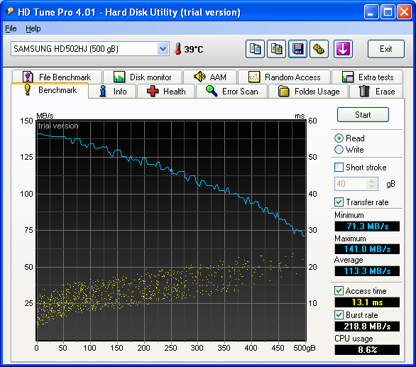 HDTach eredmény önnmagában nem mérvadó. Láttam esetet, ahol egész jól mért, láttam olyat, ahol köze sem volt a valósághoz.Ha fontos a sebesség, akkor vegyük azt az 5 perc fáradtságot, hogy feltesszük a IoMetert, és azzal mérünk. Egy mérés abban is megvan 5 perc alatt