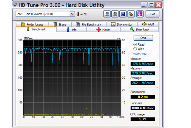 Hátööö... ez szerintem ennyit tud... (jav.: mármint nem maga az Intel RAID, hanem azon az alaplapon, valami hibából kifolyólag). Esetleg a stripe size-t próbáld állítgatni, 32 K, vagy 64 K-ra (vagy akár 256 K-ra, ha tud olyat az Intel RAID). Vagy újabb BIOS-t próba az alaplaphoz, amiben újabb RAID firmware van (ha létezik ilyen persze).