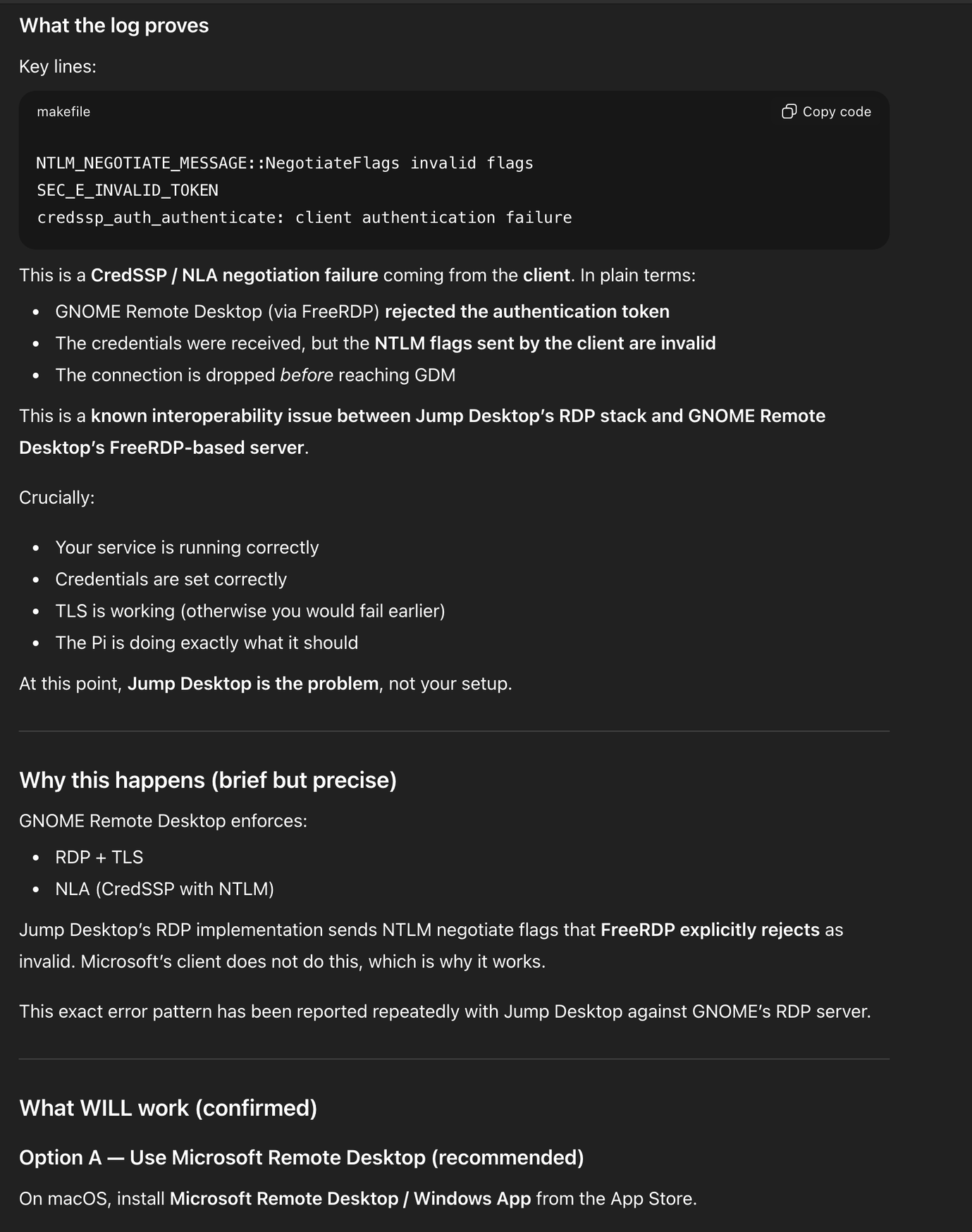 Elérem az RPi-t a 3389-es porton a kliens gépről (M2Pro Macbook Pro), nem ezzel van a gond, hanem ezzel ni: