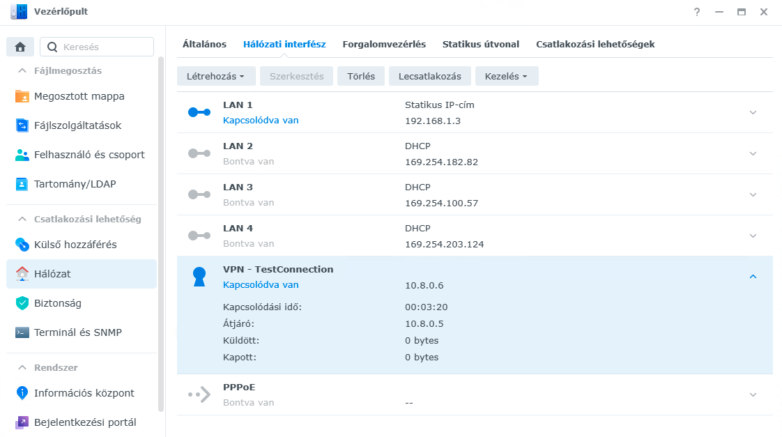 Most kipróbáltam, és elég volt az .ovpn fájlt megadni, de user/pass nélkül nem engedett tovább. Beírtam két kamu adatot, így már létrejött a beállítás, és egyből csatlakozott is:Viszont a Hyperbackup képes automatikusan elindítani/leállítani ezt a kapcsolatot?