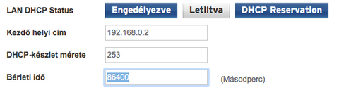 Ahogy a képen is látszik, alapból 24 óra egy IP cím bérleti ideje, ill. a DHCP Reservation menüpontban MAC cím alapján megadhatod, hogy a DHCP milyen IP-t osszon ki a klienseknek.