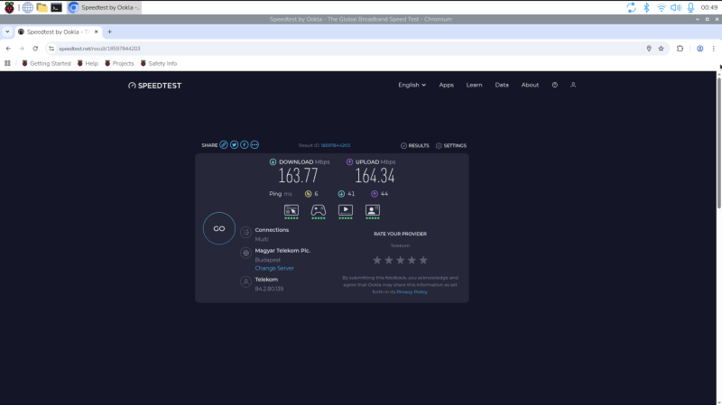 majd újraindítani a Pi-t és MEGY!!!! felufrott a WiFi-sebesség, a háznak abban a szegletében, ahol van a Pi (távol a routertől) ez már teljesen jó és használható WiFi sebesség: