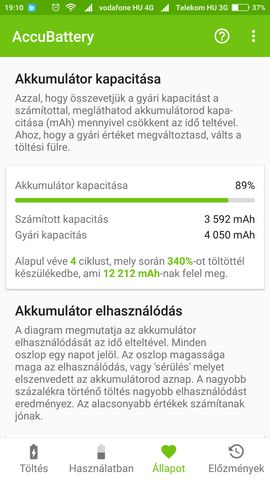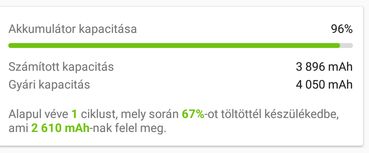 Igen, el is írtam, bocsánat, de 3684 mAh-t akartam írni (a gyári 4050 mAh, igen) 91% az első eredmény az AccuBattery Pro-val.