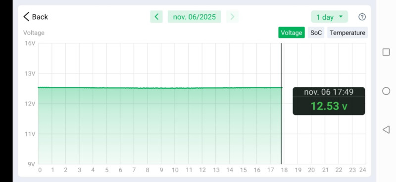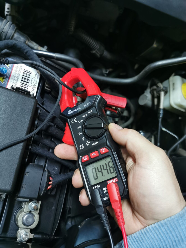 Most: saru levéve, majd 6 nap állás után 12,6V, majd 15 + 20 perc városi közlekedés után saru ismét levéve, majd 10 óra múlva mérve 12,65V.