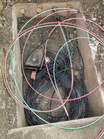 Közben kisfőnökömmel kiokumláltuk mi lehet ez. Ott a fotók alapján egy 2000 évi gyártású, régi típusú optikai kábel van. Mellé csövet húztak be (ld.fotó: zöld , és piros csíkos), melyen keresztül nagy nyomású levegővel továbbítják az optikai szálat. Ez nyugaton egy bevett technológia. Úgy hogy olybá tűnik, hogy az Invitel gerinc vezetéket fejleszt.