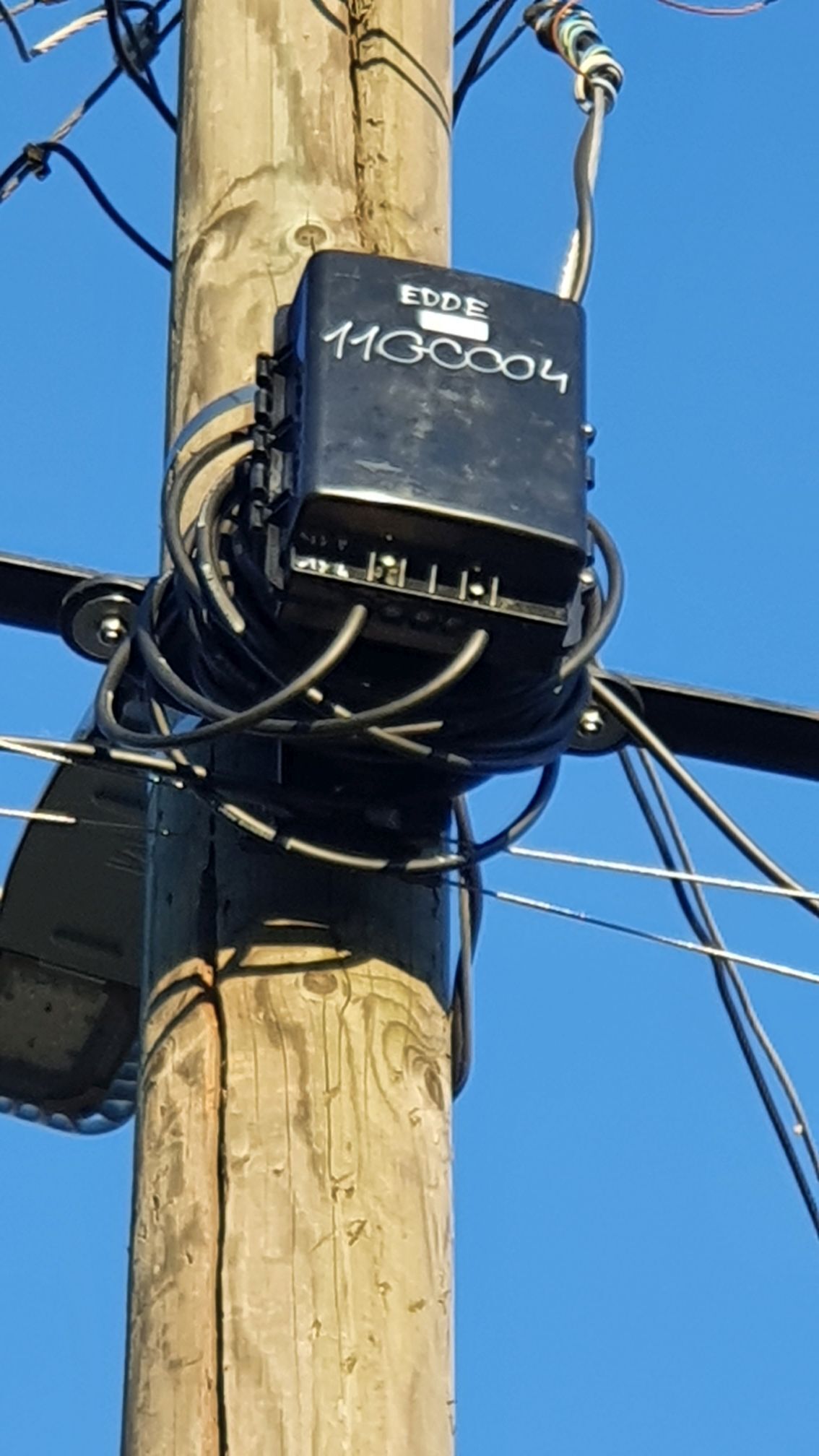 (Telekom logós dobozok vannak az oszlopokon és online érdeklődésemre is megerősítették, hogy ők fognak majd egyszer szolgáltatni ha kiépül a ráhordó hálózat.)Egyébként már a helyi hálózat is nehezen lett átvéve, mert az EON-os oszlopokon sok helyen az elektromos hálózati kábelekhez túl közel húzták ki az optikát, így hónapokig ment a javítgatás tavaly ilyenkor.